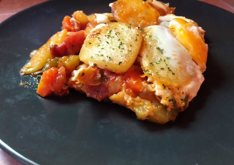 You can cook Pastel de verduras de la huerta🧑🏼🌾 con huevo 🥚 using 13 ingredients and 8 steps. Here is how you cook that.