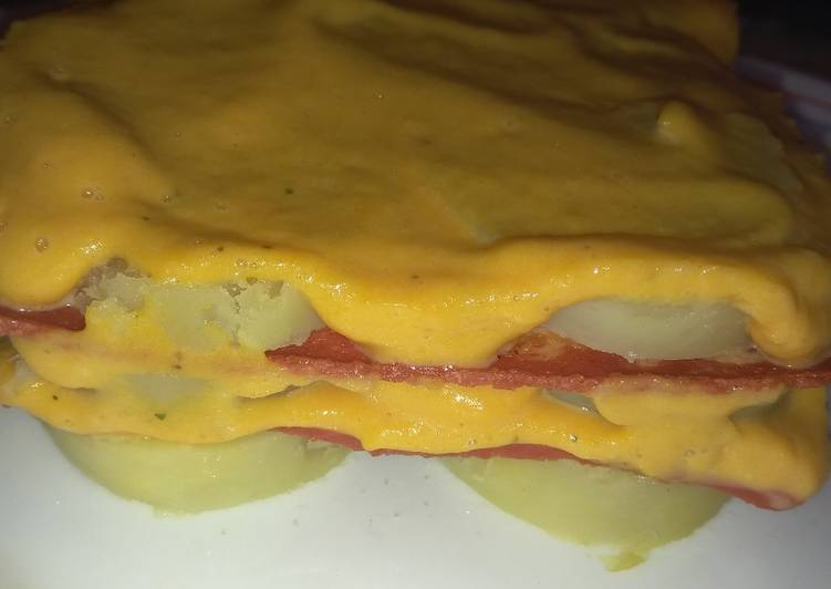 You can cook Pastel de patata y bacon vegano con salsa naranja 馃崰馃馃 using 6 ingredients and 6 steps. Here is how you cook it.