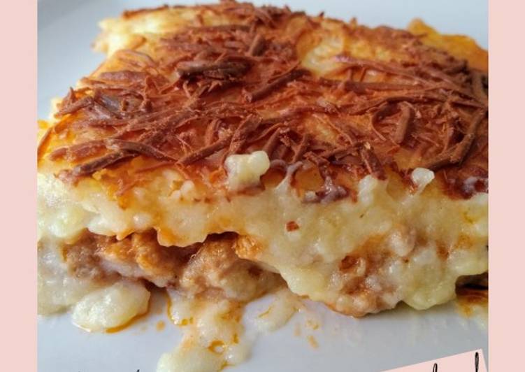 You can have Pastel de patata gratinado using 19 ingredients and 15 steps. Here is how you cook that.