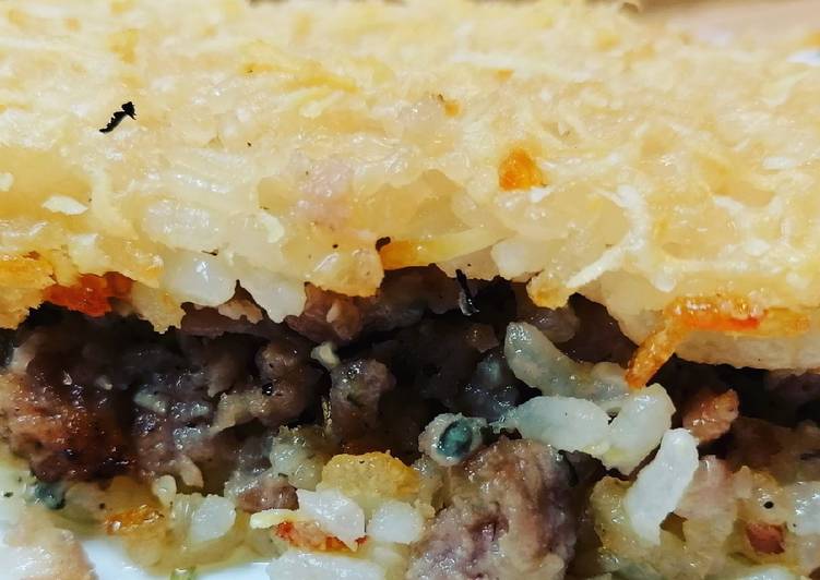 - Ponemos la carne y encima otra capa de arroz terminamos con más queso rallado. 20 min a 180 grados, para finalizar gratinados 5 minutos... Dejamos atemperar y a comer.