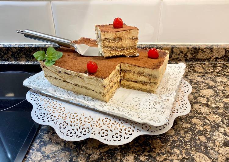 - Terminaremos con una capa de nata espolvoreada de cacao, tapamos con film transparente y dejamos mínimo 6 horas en el frigorífico..